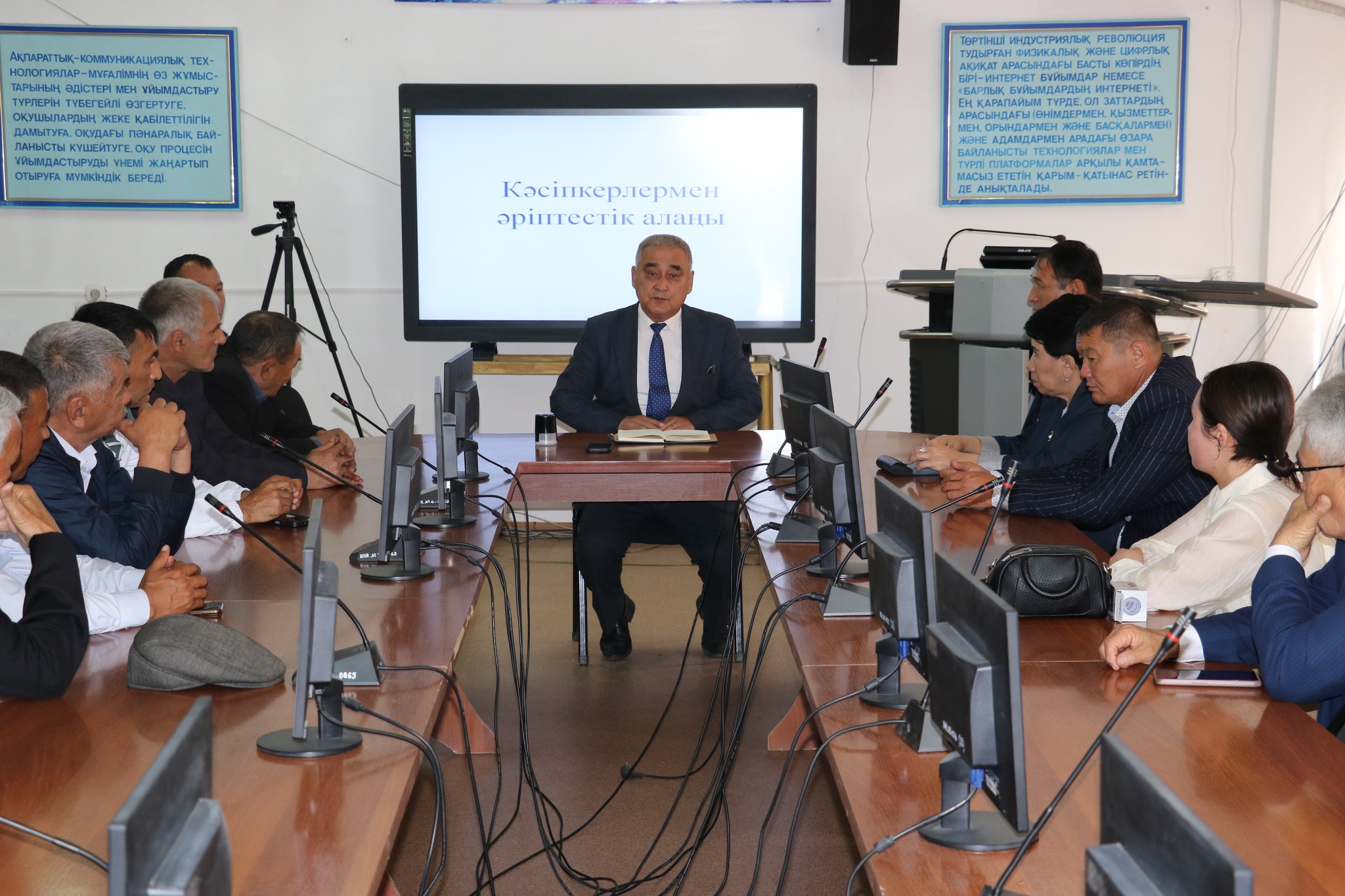 Тамақтандыруды ұйымдастыру және «Дәнекерлеу ісі» мамандықтарының арнайы пән оқытушылары өз тәжірибелерімен бөлісіп, арнайы баяндама жасады. Шара барысында Мансап орталығы Келес ауданына қарасты өндіріс орындарының және аудан мекемелерінің бос жұмыс орындарына колледждің бітіруші студенттерімен аудан жастары арасында “АШЫҚ ЕСІК” күні жәрменкесіне ұласты.