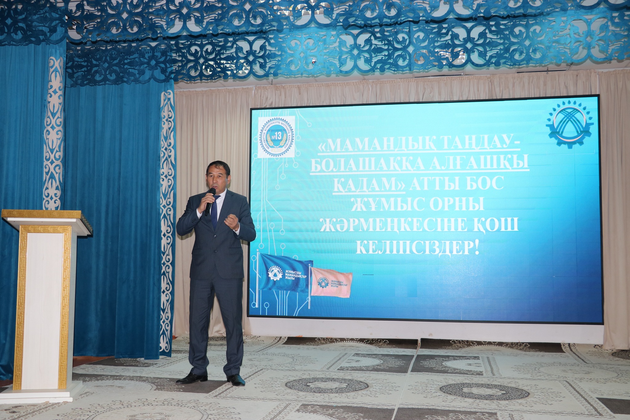 «N13 колледж» МКҚК-да «Жұмысшы мамандықтар жылы» аясында «МАМАНДЫҚ ТАҢДАУ- БОЛАШАҚҚА АЛҒАШҚЫ ҚАДАМ» атты тақырыбында өтетін бос жұмыс орны жәрмеңкесі және кәсіпорынмен танысу, жұмысшы мамандықтарының беделін арттыру және техникалық-кәсіптік білім беру жүйесін дамыту мақсатында ашық есік күні болып өтті. Жиынды колледж басшысы Козыбаев Жақсылық Ақылбекұлы ашып берді. Сонымен Келес аудандық «Мансап» орталығы басшысы Темирбаева Нурипа Құралбекқызы, «Келес» жастар ресурстық орталығының мамандары қатысты. Шара барысында «НУР АГРО» ЖШС арасында ынтымақтастық туралы меморандумға қол қойылды. Бұл келісім кәсіптік білім беру мен өндірістік тәжірибені ұштастыруға бағытталған. Меморандумға отыру мақсаты – колледжбен өндіріс орнының, арасында студенттердің өндірістік тәжірибеден өтуіне және жұмысқа орналасуына сондай-ақ, ұйымдардың өзара ынтымақтастық аясында бірлесіп жұмыс жасауға, ортақ мақсатқа қол жеткізуге және болашақта бір-біріне қолдау көрсетуге дайын екендігін ресми түрде бекіту.