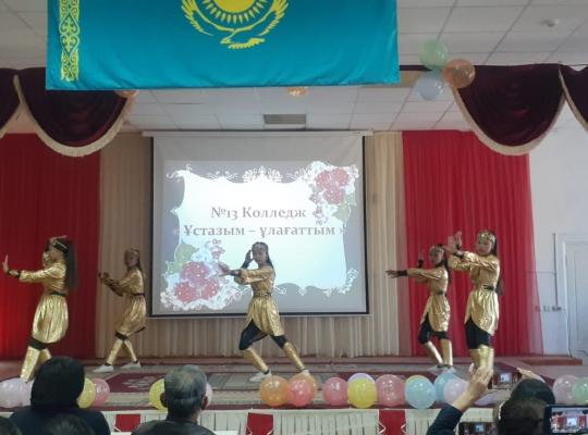 №13 колледжде "Ұстаздар күніне" орай, "Тігін өндірісі және киімдерді үлгілеу" мамандығының студенттері мен "Есептеу техникасы және ақпараттық желілер" біліктілігі бойынша білім алып жатқан І курс студенттерінің ұйымдастыруымен санитарлық нормаларды сақтай отырып, "Ұстазым-ұлағатым" атты тәрбие сағаты болып өтті.