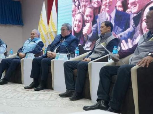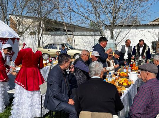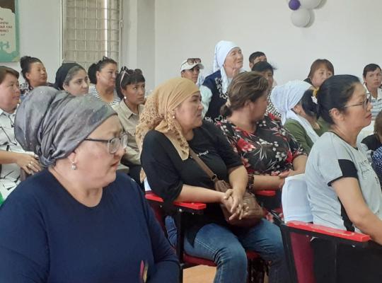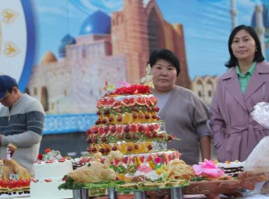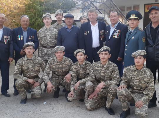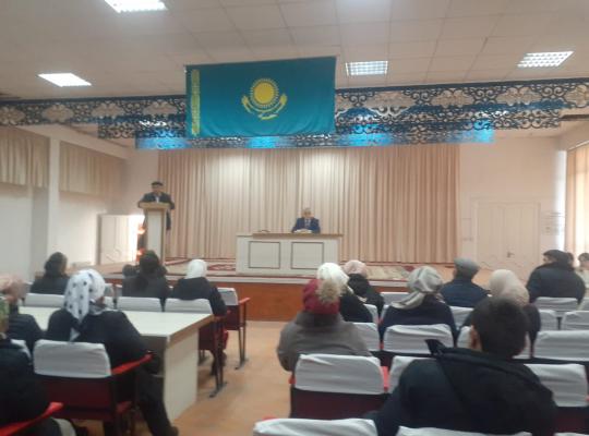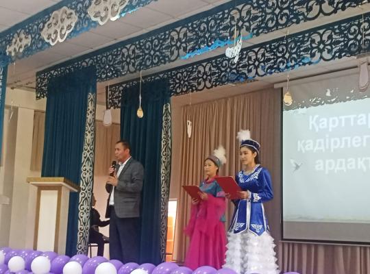 «SAMRUK» өзін-өзі басқару ұйымы мүшелерінің ұйымдасытруымен №13 колледжде «Қарттарын қадірлеген ел ардақты» атты Келес ауданы «Әжелер алқасы» төрайымы Әзімкулова Әділет апамен мүшелері Абай ауылдық әжелер алқасының төрайымы Артыкова Меруерт апа, Қошқарова Амина апа, Сатбаева Бибіажар апа